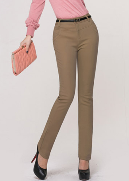 女士修身品红色西裤